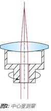 透鏡的中心也稱為向心性或離心性,是根據(jù)光束偏差δ(方程式1)而指定的。一旦給定了光束偏差,則可以通過一種簡單的關系來計算楔角W(方程式2)。 透鏡的離心量是機械軸與光學軸物理偏離的距離。透鏡的機械軸僅為透鏡的幾何軸,是由其外部的柱面來定義的。 透鏡的光學軸是由光學表面來定義的,它是連接各表面曲率中心的線。要進行向心性測試,請將透鏡置于茶杯中,對其施壓。 對透鏡施加的壓力會自動聚集在茶杯中心第一個表面的曲率中心,并且該中心還會與 旋轉軸對齊(圖2)。沿著此旋轉軸射入的平行光將會穿過透鏡,到達后焦平面的焦點處。當透鏡隨著茶杯的旋轉而旋轉時,透鏡中的任何離心性都會使聚焦光束分散,并在后焦平面形成一個半徑為 Δ 的圓軌跡(圖1)。