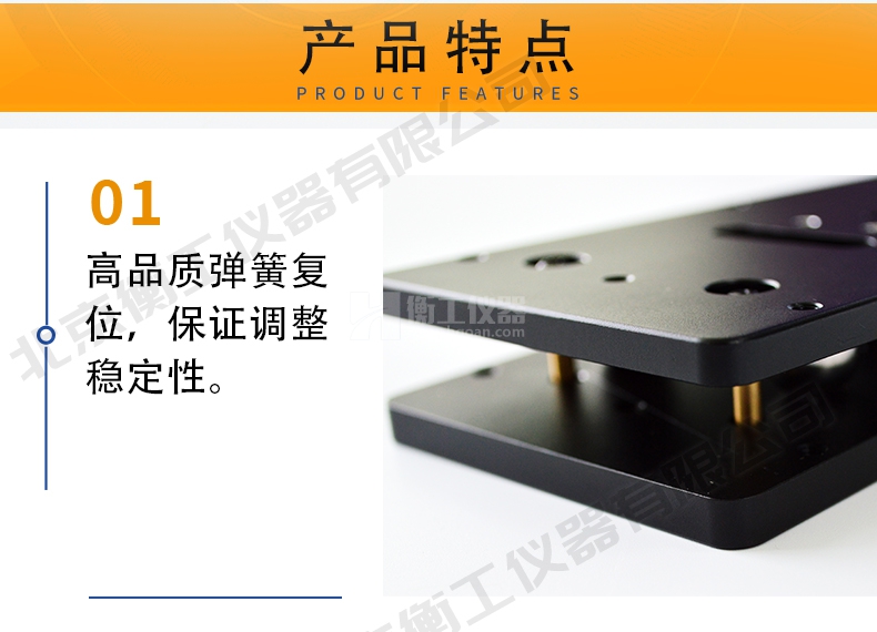 1.提供單軸傾斜調(diào)整,高品質(zhì)彈簧復位,保證調(diào)整穩(wěn)定性;
