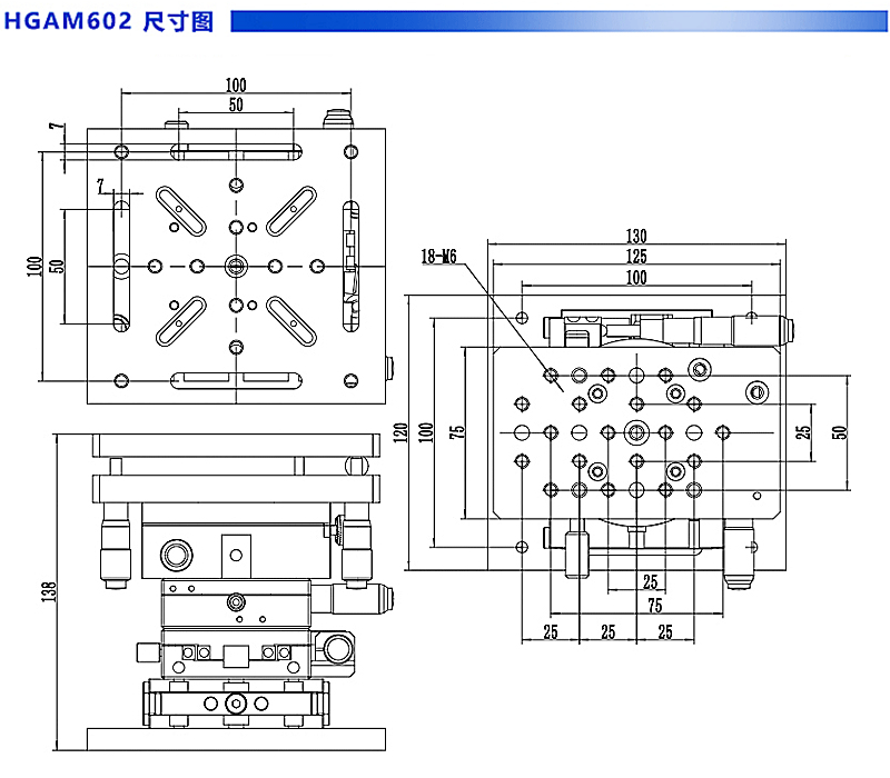 ● 上下部均有標(biāo)準(zhǔn)孔距的連接孔,方便與其他位移臺連接,組成多維移動臺。